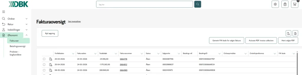 Det er muligt at vælge flere faktura og generer en samlet FIK kode, som kan betales på én gang. På Bogportalen kan du generer én samlet FIK-kode for valgte faktura.